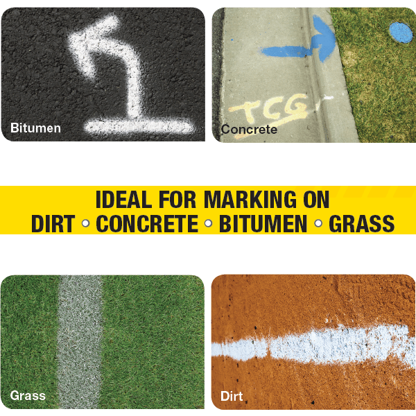 - Use on bitumen, dirt, concrete and grass